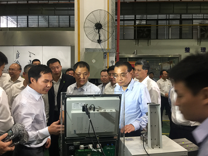 10月13日上午,中共中央政治局常委、國務院總理李克強蒞臨大族激光全球智能制造基地視察指導,科技部部長萬鋼、工信部部長苗圩、省委書記胡春華、廣東省省長朱小丹、廣東省委副書記、深圳市委書記馬興瑞與深圳市市長許勤等領導陪同調研。