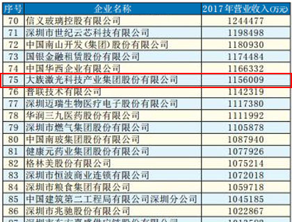 由深圳市企業聯合會、深圳市企業家協會(以下簡稱深圳企聯)編撰的《2018深圳500強企業發展報告》即將正式對外發布,《2018深圳500強企業發展報告》中的“2018深圳500強企業”名單按照營業收入排序,激光設備領域龍頭企業大族激光順利入圍。